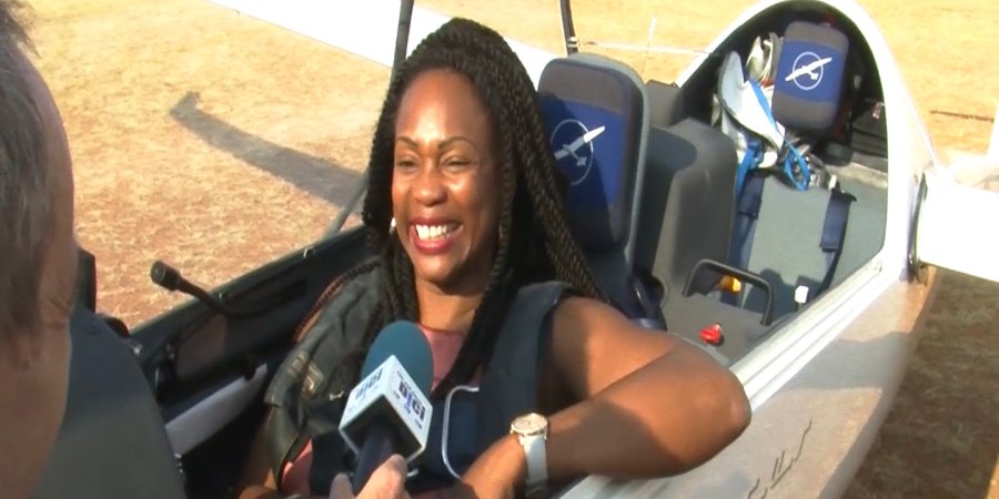 L'ancienne championne olympique a pris le temps d'admirer la Durance, les Pénitents des Mées et le magnifique paysage des Alpes lors d'un vol en planeur, accompagnée par l'équipe de France de vol à voile libre championne du monde, installée sur l’aérodrome de la région PACA de Saint Auban.