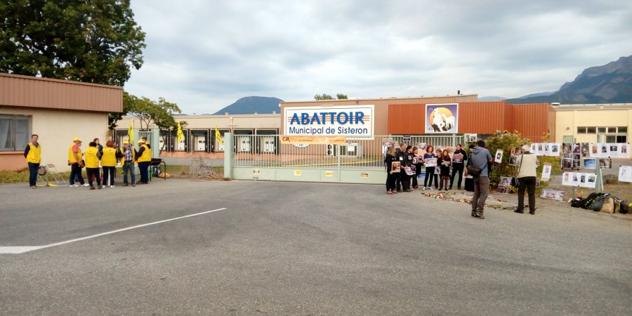 Le rendez-vous était donc donné devant l'abattoir de Sisteron. D'un côté les éleveurs avec leur barbecue et de l'autre les végans avec des images fortes. Ce fut une manifestation pacifiste avec chaque opposant de son côté. Mais chacun voulant faire passer son message :