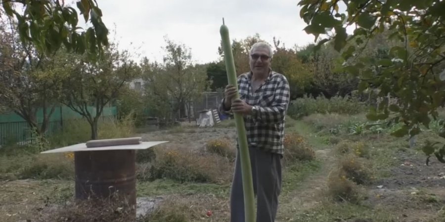 Aldo Napoli est passionné de jardinage et il est récompensé ! Il a récolté une courgette plus grande que lui de 1,85 m.