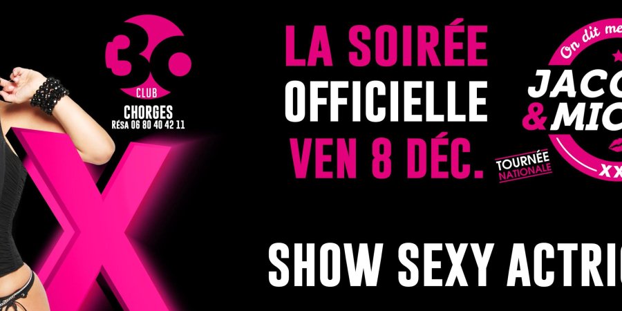 Ça va faire parler ! Une soirée Jacquie et Michel est organisée le vendredi 8 décembre prochain au club 30 à Chorges ! La soirée promet d'ores et déjà d'être électrique. Au menu, "un show sexy actrices" !