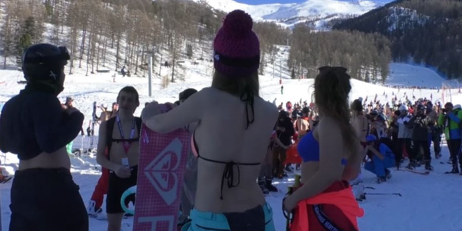 Ils étaient des centaines à dévaler les pistes en bikini ce mercredi aux Orres. Dans le cadre du festival de ski hongrois "snowattack", les skieuses et les skieurs étaient invités à se mettre en maillot de bain pour faire la fête sur le front de neige :