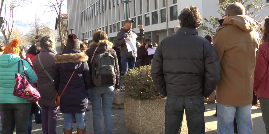 Ils sont en grève ! Les représentants syndicaux de la FSU 05 et Sud Éducation 05 sont inquiets. Pour la rentrée scolaire 2018, quatre postes devraient être supprimés dans le premier degré et neuf postes dans le second. Des suppressions qui concernent l’école des Costes ou encore de La Motte-en-Champsaur... Cinq postes seront fermés dans le nord des Hautes-Alpes : ce sera le cas à L’Argentière-la-Bessée, aux Vigneaux ou encore dans le Queyras. Ces suppressions pourraient avoir d'importantes conséquences sur l'enseignement et emmener, à terme, vers une fermeture de certains établissements, selon les syndicats. Des enseignants mais également des parents de Veynes, Tallard ou encore l'Agentière la Bessée se sont rassemblés ce mardi matin devant l'inspection académique à Gap :