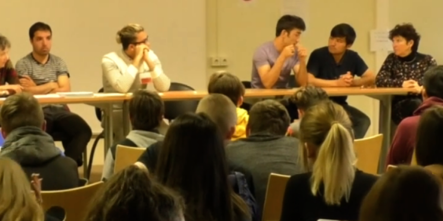 Une semaine civique pour sensibiliser les jeunes à l'histoire des migrants, c'est ce que propose le collège Paul Arène de Sisteron à ses classes de quatrième. Deux jours, du mardi 10 avril 2018 au mercredi 11 avril 2018, pour rencontrer des migrants provenant du centre social de Beaulieu à Sisteron. Said,Belalil, Ismaël et Mihrad, qui viennent tous les quatre d'Afghanistan,se sont joints au projet du collectif de Solidarité avec les Réfugiés de Sisteron qui propose une nouvelle fois au lycée Paul Arène une collaboration citoyenne et civique. Pour le collectif, il faut dépasser les préjugés liés à l'arrivée de ces réfugiés qui fuient leur pays pour cause de guerre ou de menaces réelles. Il s'agit de personnes humaines avec une histoire souvent très dure .Christelle Fasciotto, bénévole au sein du même collectif, nous explique qu'il manque néanmoins deux jeunes du centre social de Veynes qui devaient arriver hier soir, mais, confrontés à la police, ils ont fait demi-tour.