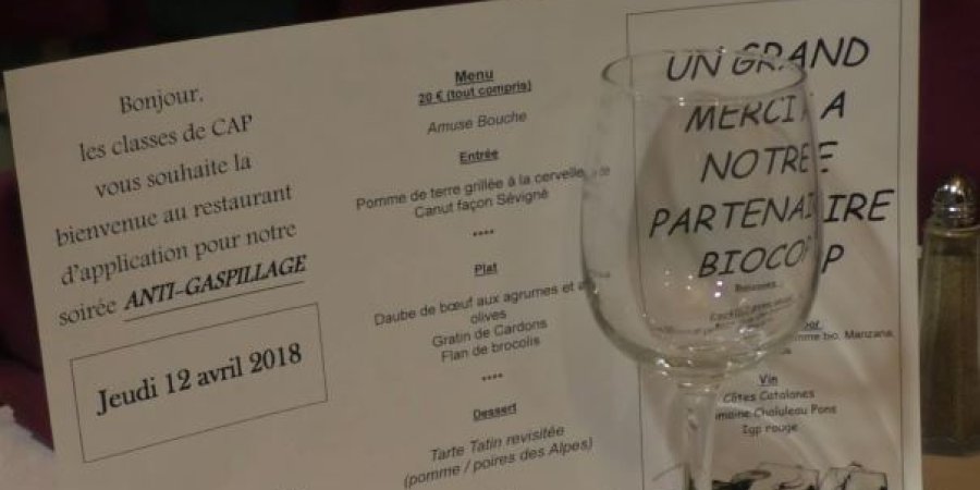 À Gap, le lycée Sévigné met en avant son engagement pris contre le gaspillage alimentaire. À cette occasion, un repas "anti-gaspi" était organisé par le restaurant de l'établissement "le Sommet des Saveurs" ce jeudi soir, avec l'aide bénévole des élèves de première et de terminale CAP. Pour les professeurs, cet exercice était l'occasion de sensibiliser les élèves au gaspillage alimentaire car ils ont travaillé des produits invendus de l'enseigne Biocoop, partenaire de l'événement.