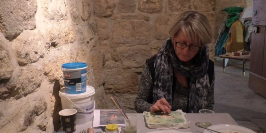 C’est une technique bien connue dans les départements des Hautes-Alpes et des Alpes de Haute Provence : la technique de la fresque utilisée notamment pour les cadrans solaires comme celui de Saint Véran. Dérivée de l’italien « a fresco » qui signifie au frais, c’est tout naturellement dans une cave à Forcalquier que nous avons rencontré une artisane de Volx.