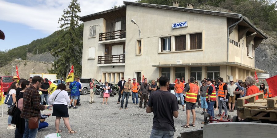 Environ 40 cheminots se sont réunis ce lundi matin à Savines le Lac. Ils ont mis en place une distribution de tracts qui comme on peut l'imaginer perturbe la circulation sur la RN94