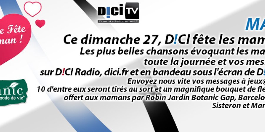 Vous avez été nombreux à nous avoir envoyé des messages pour la fête des mères ! Comme prévu, nous en avons tiré 10 au sort et chacune des mamans concernées se verra offrir un beau bouquet à récupérer chez Botanic. Contactez vite le 04.92.52.07.31 (choix n°2) en nous laissant votre numéro.