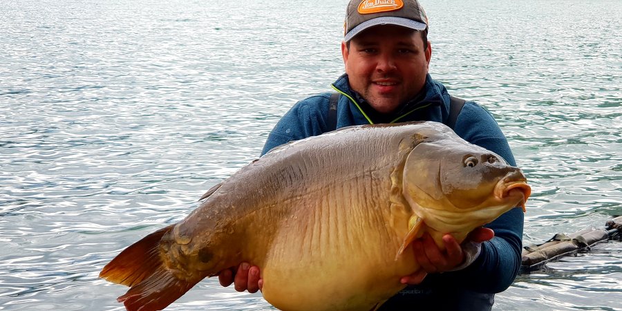 C'est bien cette magnifique carpe miroir de 20,400 kg qu'Alexandre Barre a pêchée récemment au plan d'eau d'Embrun !