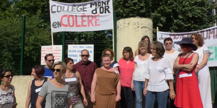 Ce n'est pas une grève mais les enseignants du collège du Mont d'Or de Manosque sont postés depuis ce matin devant l'établissement pour faire connaître leurs revendications. Ils n'empêchent en rien les cours mais ils souhaitent plus de moyens pour le bon focntionnement du collège avec l'ajout d'un poste de principal adjoint, un demi poste de CPE , un poste de surveillant, une classe relaie et ils souhaiteraient aussi un poste de Français langues étrangères. Après une rencontre avec l'inspecteur d'académie qui leur a annoncé qu'il ne pourrait pas leur fournir de moyens supplémentaires sans réduire ceux d'autres collège ils commencent aujourd'hui à manifester. Mireille Tourreau enseignante du collège depuis 20 ans nous explique leurs revendications.