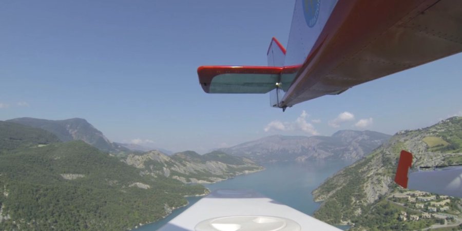 Un lac turquoise, un paysage à couper le souffle, c'est ce que l'on voit de l'hydravion de Bertrand. Il propose des tours du lac de Serre-Ponçon afin de découvrir les environs d'une autre façon.