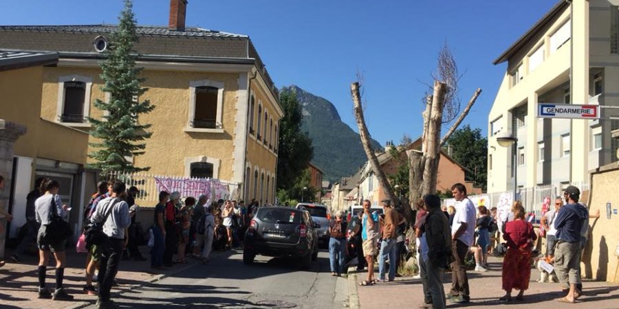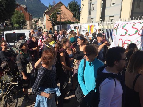 140 personnes mobilisées ce mardi matin devant la gendarmerie de Briançon : le collectif "Tous migrants" entend soutenir 4 de leurs collègues en garde à vue après la manifestation du 22 avril qui avait dégénéré à la frontière de Montgenèvre puis à Briançon. 3 hommes et une femme selon le collectif sont actuellement entendus pour "aide à l'entrée irrégulière" d'étrangers "en bande organisée". Parmi eux, plusieurs membres du conseil d'administration du collectif.