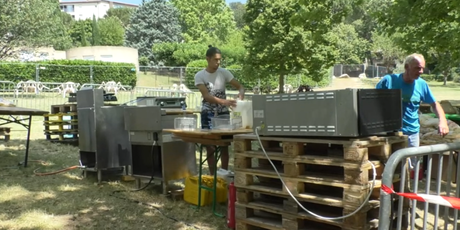 C'est ce soir que le parc de Drouille de Manosque va commencer à vibrer avec en première partie Berywam et le chanteur Patrice dans la soirée ! Ce jeudi après-midi, les bénévoles étaient à leur maximum, on l'a vu hier déjà le bar s'installait et aujourd'hui c'est tous les repas des festivaliers qui étaient le plus gros du travail ! Mais est-ce vraiment du travail quand on est bénévole en festival ? En tout cas, ceux qu'on a rencontrés en redemande !