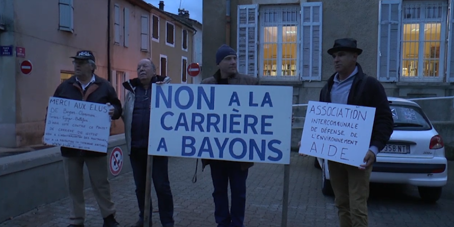 Une manifestation contre l’ouverture d’une carrière de gypse à Bayons. C’était ce mardi soir. Les membres de l’association AIDE (Association intercommunale pour la défense de l’environnement) étaient réunis à Laragne devant le conseil communautaire de la CCSB pour protester contre le projet qui représente « un désastre économique et environnemental » selon eux. L’entreprise allemande Knauf aurait l’intention de créer une usine de plaques de plâtre au Poët, sur la parc d’activité des grandes branches et l’industriel choisira d’ici la fin de l’année si le site est retenu. Les membres de l’association ont souhaité informer les élus sur les dangers liés à cette implantation et soutenir les maires qui se sont déjà prononcés contre. Marc Linarès, le président de l’association AIDE :