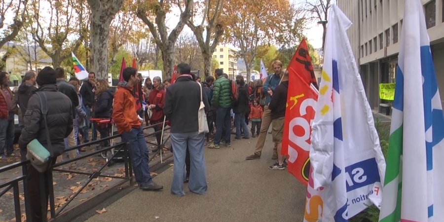 Les enseignants, syndicats et parents d'élèves sont en grève partout en France, ce lundi, comme ici à Gap, devant l'inspection académique. En cause, la suppression de 2650 postes dans les collèges et lycées publics, 550 dans le privé et 400 dans l'administratif. Problème, ce sont les enfants et étudiants qui en souffrent car les manques de moyens humains ne permettent plus de répondre aux besoins des élèves scolarisés. Les grévistes en ont ras-le-bol que l'Etat, sous prétexte de devoir faire des économies, bafoue le droit à l'éducation. Depuis 2011, c'est la première grève à réunir les syndicats de la maternelle au lycée.
