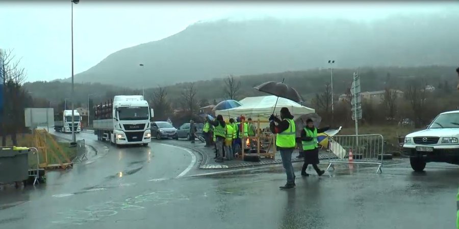 A Gap, au rond-point du Sénateur à Charance après avoir bloqué les camions ce matin, le barrage est devenu filtrant tenu par une trentaine de personnes.
