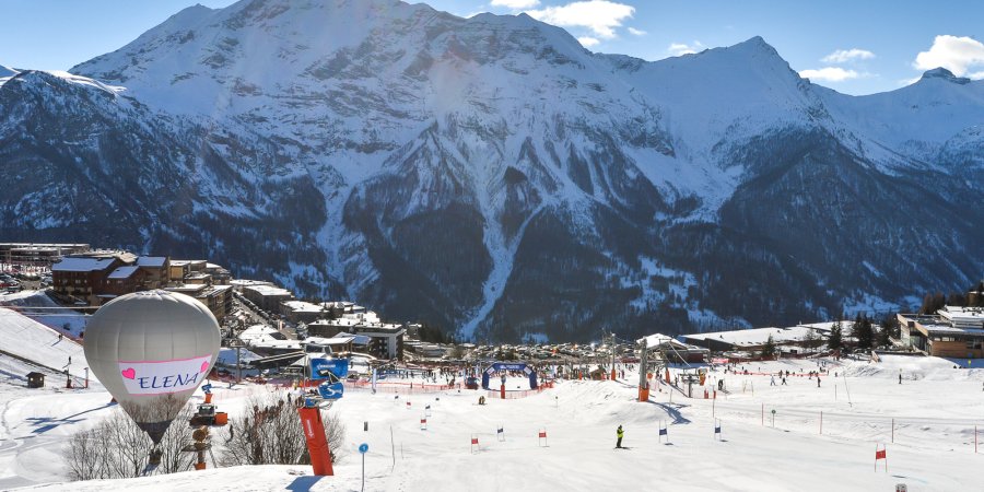 proches d'Éléna, avec une montgolfière surplombant la station, tout au long de la course.