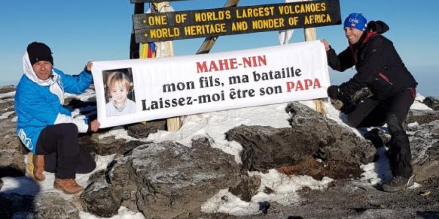 Nous l'avions rencontré il y a quelques mois : Alain Pujol est un papa qui comme beaucoup d'autres aujourd'hui est pris dans les procédures juridiques d'un divorce. En conséquence, il lutte pour avoir la garde de son fils Mahé-Nin. Cet hiver, pour montrer sa détermination, il n'a pas hésité à aller jusqu'en Tanzanie pour gravir les 5895 mètres du Kilimanjaro. Depuis ce sommet, il a brandi une banderole pour demander la garde de son fils. Une belle preuve d'amour.