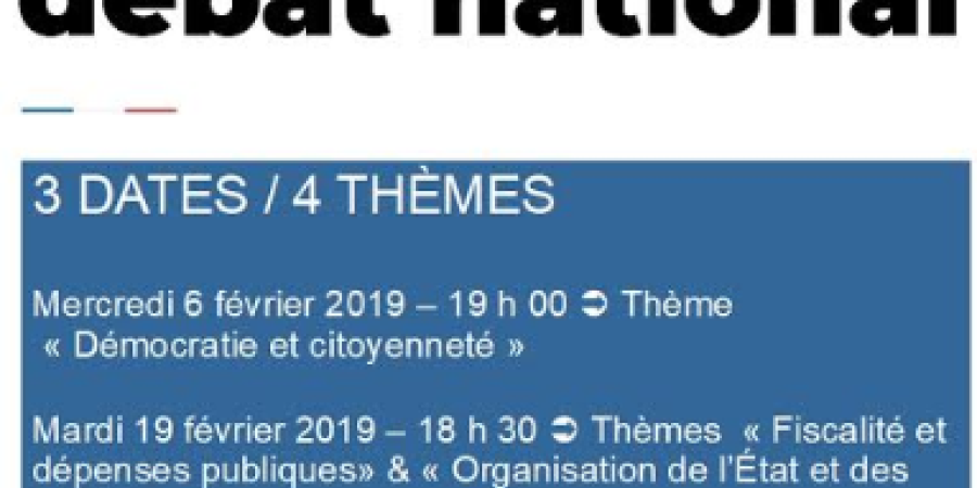 Voilà quelques semaines que le grand débat national est lancé. Malgré quelques réticences du côté des gilets jaunes comme on a pu l'entendre à plusieurs reprises, les communes, elles, jouent le jeu comme à Forcalquier où 3 réunions sont organisées en février sur des thèmes différents. Le Mercredi 6 février 2019 à 19h00 sur le thème "Démocratie et citoyenneté". Le Mardi 19 février 2019 à 18h30 les deux thèmes : "Fiscalité et dépenses publiques" et "Organisation de l'État et des services" et enfin le Samedi 23 février 2019 à 9h30 sur le thème "Transition écologique".