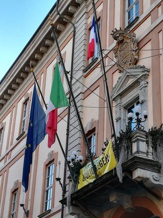 La mairie de Cunéo avant que l'Etat italien ne fasse enlever le drapeau: