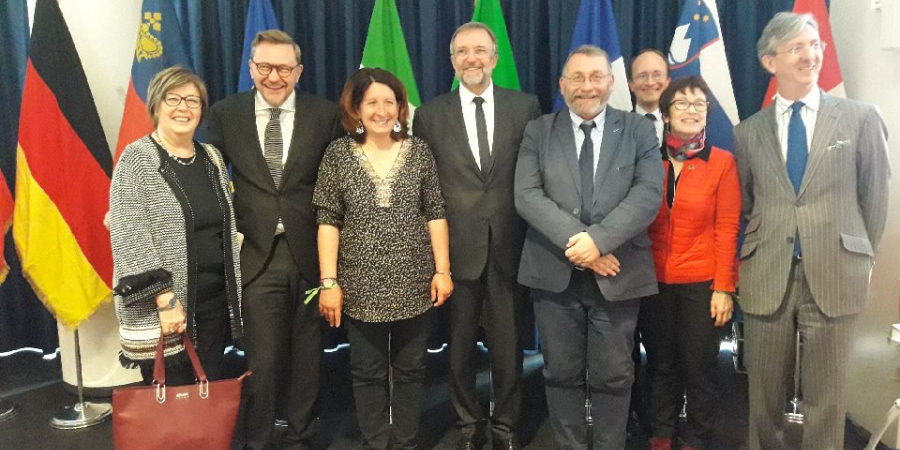 « La plus importante, et permettez-moi de le dire la plus belle, chaîne de montagne d’Europe, un de ses berceaux culturels, est aussi l’une de ses régions les plus dynamiques et innovantes, qui représente 80 millions d’habitants et couvre sept États et près d’une cinquantaine de régions. Mais la région alpine se caractérise aussi par des défis communs, qui sont autant de contraires à rassembler, liés notamment à la topographie : carrefour de l’Europe mais barrière naturelle difficile à franchir ; zone marquée par les disparités territoriales ; région très touristique mais qui doit évoluer vers un tourisme plus durable et mieux réparti dans l’année et sur le territoire ; château d’eau de l’Europe et un des derniers sanctuaires de biodiversité mais aussi écosystème très fragile et exposé aux effets du changement climatique. Tous ces défis, la stratégie macrorégionale alpine fait le pari de les relever en commun. »