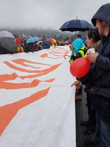 On peut parler de réussite pour la mobilisation de ce mercredi sur le pont de Savines le Lac contre la privatisation de barrages : au moins 700 personnes selon les autorités, près d'un millier selon les participants... une performance au regard du mauvais temps et de la pluie qui n'a cessé de tomber dans le secteur de Serre-ponçon. Un rassemblement hétéroclite avec avant tout des Gilets Jaunes mais aussi des syndicats comme la CGT, le mouvement de la Paix, le parti communiste. Bref un succès pour cette mobilisation au regard des conditions climatiques mais un regret, celui de ne pas avoir réussi à élargir le cercle sur un thème aussi transversal que la privatisation des barrages qui devrait dépasser les clivages habituels. Ce sujet d'importance (lire ci-dessous) devrait en théorie motiver une union bien plus large et an particulier l'ensemble des élus qui n'étaient pas au rendez-vous de cette initiative à part le maire voisin de Savines le Lac, Victor Berenguel. Celui qui est aussi président du Samadesep qui gère les rives de Serre-Ponçon est venu dire son opposition à ces perspectives de privatisation. A la mi-journée, d'autre maires dont celui de Guillestre, celle de Rousset, celui de Monêtier-Allemont ont rejoint le rassemblement.