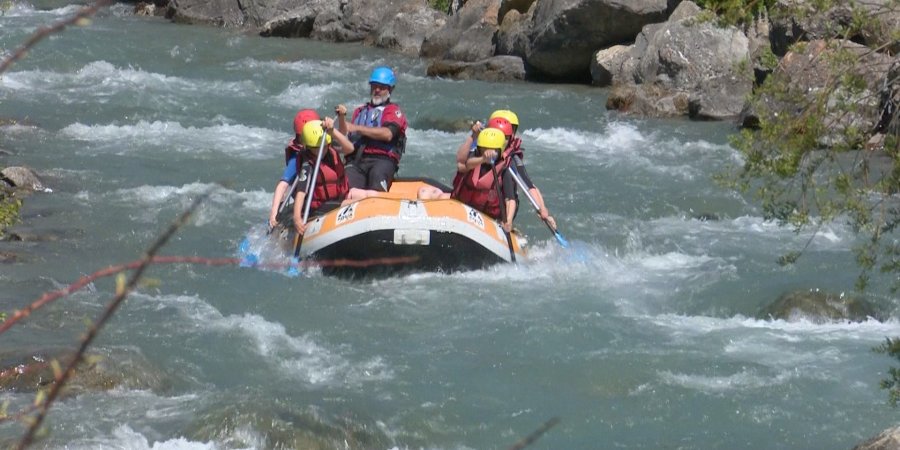 Les élèves de cinquième du collège Champagnat d'Issenheim dans le département du Haut-Rhin sont en stage sportif cette semaine dans le Briançonnais. Sous l'impulsion de leur professeur d'EPS, ils découvrent les joies du rafting. Ils ont la chance de découvrir ce sport dans des conditions optimales. Un soleil vaillant et une rivière grossie par la fonte des neiges, tel est le menu pour descendre la Guisane de Monêtier à Chantemerle. On écoute au micro d'Arnaud Veyret Olivier Walger, le professeur d'EPS et des jeunes surpris par la température de l'eau.