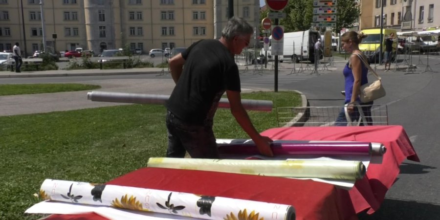 Ce lundi après-midi, et jusqu'en soirée, la foire d'été de Gap s'est installée, comme de tradition, sur le boulevard de la Libération. Si les troubles de la circulation pouvait se faire sentir, l'effet était bien moins négatif que sur les éditions de printemps et d'automne. En début d'après-midi, les vendeurs ont déballé leurs étals. Nous y avons rencontré Francis, un vendeur de Port de Bouc, fidèle parmi les fidèles. Il fréquente les foires de Gap depuis 30 ans :