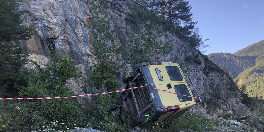 Peu après 19h mercredi 7 août, une camionnette d'ouvriers roumains travaillant dans la station de Vars descende de la RD902 en direction de Guillestre, leur freins lâche dans une épingle et fini sa course dans un talus prêt du ravin.