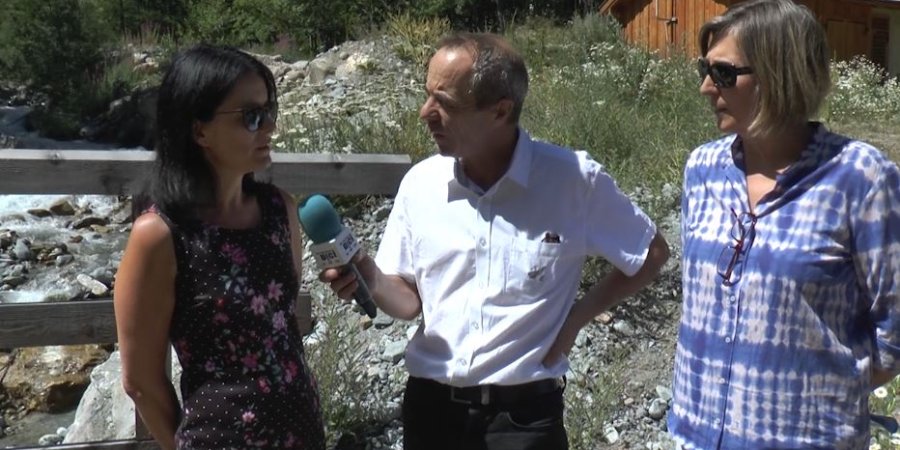 La commune du Monêtier-les-Bains dans le Briançonnais est décidément exemplaire en terme d’énergie renouvelable et ce n’est pas nouveau. La chaufferie au bois existe depuis 25 ans et chauffe tout le secteur de Près-Chabert, les thermes ont beaucoup investi aussi et deux projets majeurs de micro-centrale sont entrain de voir le jour dans le secteur du Grand Tabuc. On retrouve dans ce beau décor Jean-Marc Passeron avec Isabelle Conrot DGS de la commune et la maire Anne Marie Forgeoux, l’objectif est ambitieux, assurer l’alimentation électrique de 85% des logements.