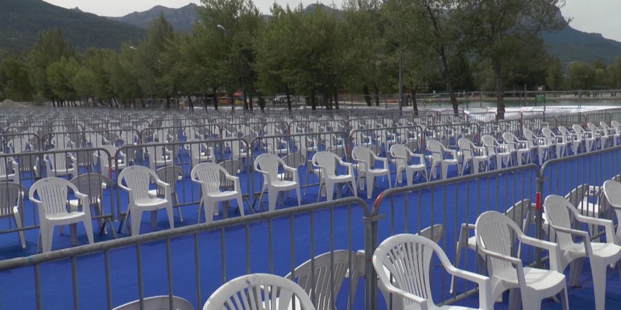 Vous le savez, ce jeudi 15 août, Embrun et les Hautes-Alpes accueillent l'Embrunman, cette épreuve de triathlon devenue mythique pour sa difficulté. Pour accueillir près de 1200 participants (inscrits sur la version longue), les services techniques de la ville et les bénévoles travaillent d'arrache-pied plusieurs jours avant. À quelques heures du lancement de l'épreuve, Marc Audier, adjoint à la mairie, peaufine avec son équipe les derniers détails du parc à vélo :