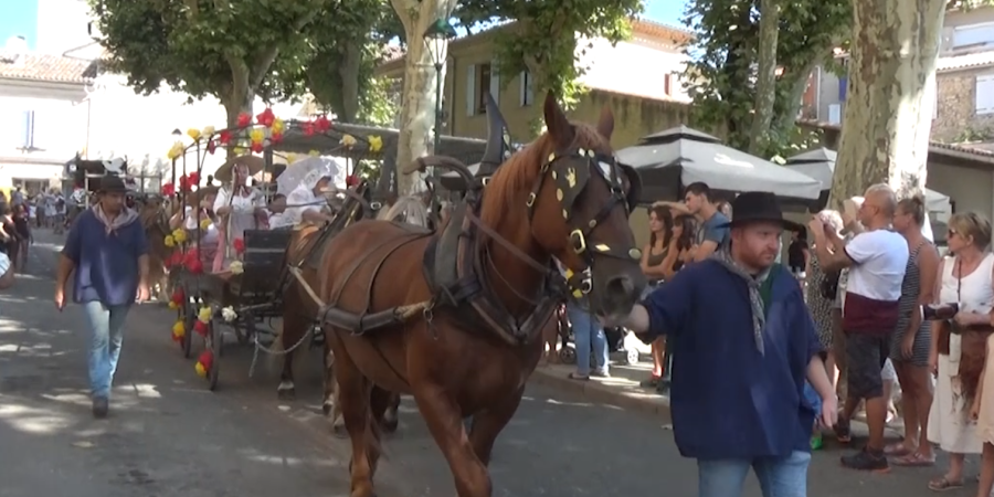 C’est devenu un rendez-vous traditionnel de la fin du mois d’août à l’image de château Gombert, une immense cavalcade traverse les rues de Ginasservis près de Vinon sur Verdon dans le haut-var. Les chevaux de traits et leurs attelages se mèlent au groupe folkloriques provençaux pour une grande déambulation dans les rues du village. Un hommage à saint Eloi, saint patron des charretiers.
