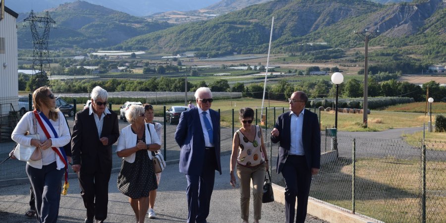 Inauguration des aménagements effectués au hameau de Rousset à Curbans. Aux côtés de la maire Laurence Allix , Daniel Spagnou, président de l'AMF 04, Evelyne Faure, conseillère départementale Fabienne Ellul, sous-préfète d'arrondissement et le sénateur Jean-Yves Roux
