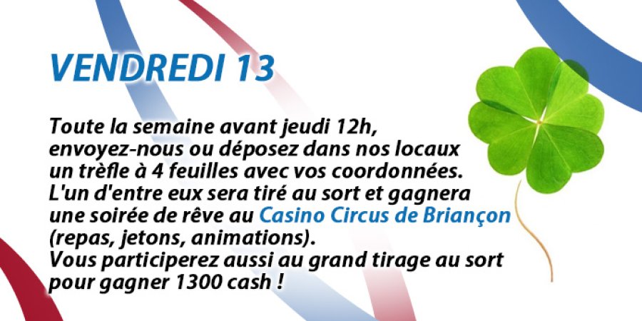 Vous avez été nombreux à nous envoyer des trèfles à 4 feuilles pour notre grand jeu du Vendredi 13 et l'heureuse gagnante est Madame Marie-France NORBERT de Gap !