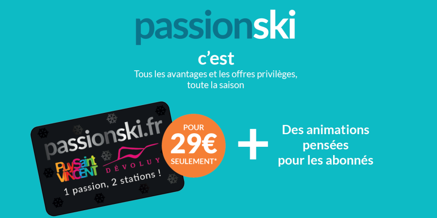 Cette saison, les stations du Dévoluy et de Puy Saint Vincent s’associent à travers un produit commun, le PassionSki. Une offre exclusivement Web donnant de nombreux avantages.