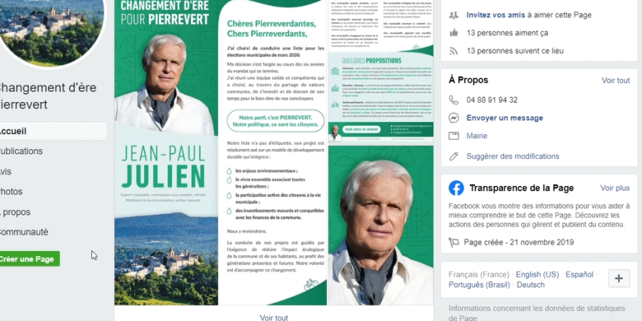 Parlons à présent des municipales, la course se poursuit et de nouveaux candidats se font connaître à Pierrevert André Mille le maire sortant a déjà annoncé sa cabndidatyure et il ne sera pas seul candidat. En face de lui Jean-Paul julien Conseiller municipal d‘opposition depuis 2014, il souhaite changer de politique municipale à Pierrevert et il s'est déclaré comme candidat :