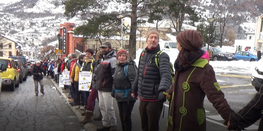 La chaîne solidaire organisée par 5 organisations nationales et Tous Migrants a connu un beau succès ce mercredi à Briançon, dans la chaussée Saint Catherine jusqu'à la Sous-Préfecture, afin d'interpeller les parlementaires sur le non-respect des droits aux frontières. Cette action a eu lieu également dans les autres villes frontières comme Calais, Dunkerque, Hendaye et Menton. Marianne Chaud, membre de Tous Migrants, et Denis Roche, membre d'Amnesty International, nous expliquent le but de cette action :