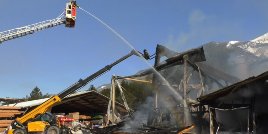 Un incendie impressionnant a détruit ce vendredi les ateliers de l'entreprise Alpes Méditerranée Charpente sur la commune de Saint Crépin près de Guillestre dans la zone d'activité des Hodouls. Les ateliers de l'entreprise de Charpente se sont embrasés juste après 8h sur une surface de 1000 m² alors que les 13 employés commençaient leur journée de travail. C'est la partie atelier et production de l'entreprise Alpes Méditerranée Charpente qui est partie en fumée. Des images de la fin d'intervention :