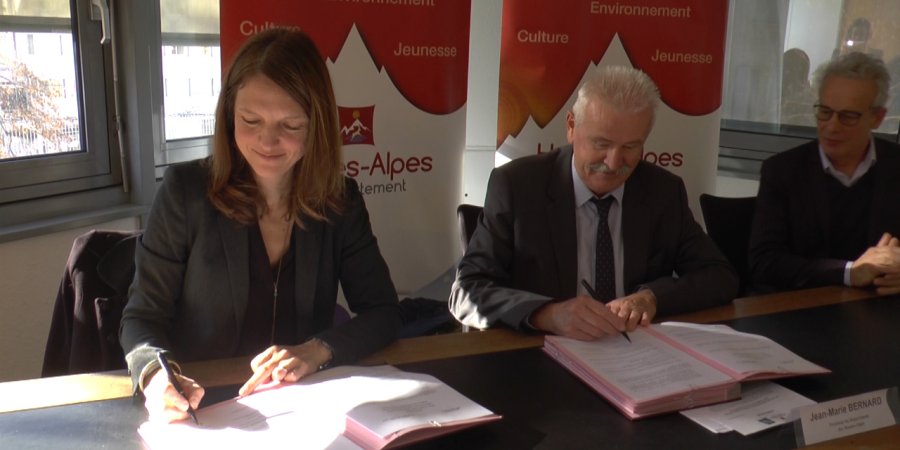 Jean-Marie Bernard, Président du Département des Hautes-Alpes, et Annick Mièvre, Déléguée régionale de l’Agence de l’eau Rhône Méditerranée Corse, ont signé ce mardi 10 décembre l’accord cadre qui va régir les relations entre ces deux partenaires dans les six prochaines années, ainsi que les trois conventions d’application qui s’y rattachent.