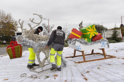 Dès ce matin les équipes des services municipaux se sont attelées à restaurer ces décorations qui font le bonheur des petits et des grands.