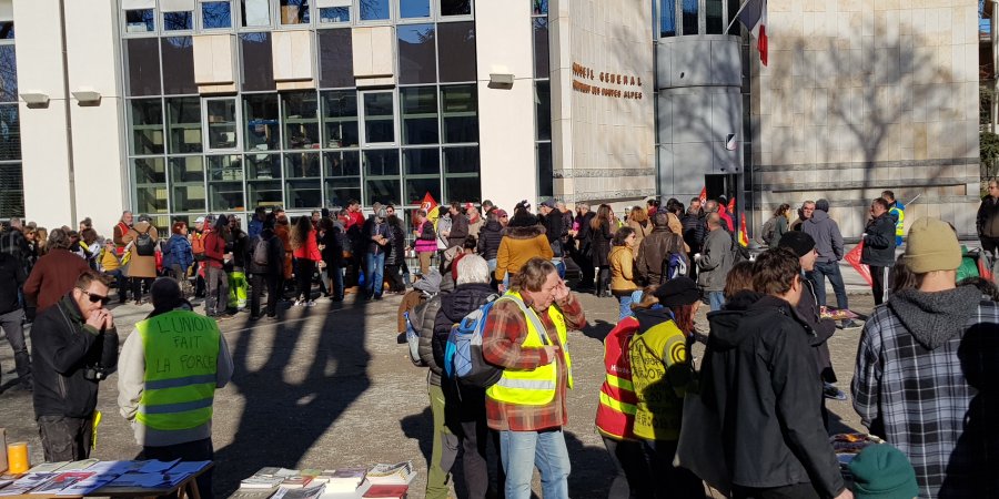 Environ 180 personnes sont présentes ce jeudi entre midi et 13h devant le conseil général du département des Hautes-Alpes pour la manifestation contre la réforme des retraites. Gilets jaunes, CGT, Solidaires, Force ouvrière, FSU et la CFECGC participent à cette nouvelle marche qui devrait débuter à 14h.