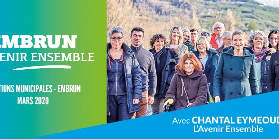 Chantal Eyméoud candidate à sa propre succession à Embrun. L'annonce, qui devait avoir lieu ce lundi en fin d'après-midi, a fuité sur les réseaux sociaux, avec la publication d'une page "Chantal Eyméoud 2020". "Embrun, l'avenir ensemble", c'est le cri de ralliement de l'élue embrunaise, qui apparaît sur Internet avec ses colistiers.