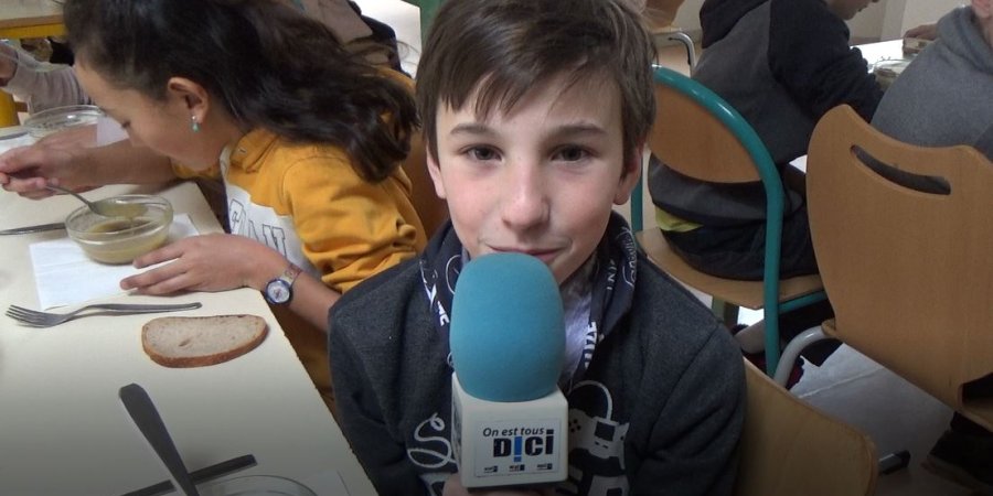 Les enfants de Briançon ont la chance de manger sain et bio à la cantine, et ce depuis 7 ans. 600 repas sont préparés chaque jour avec des produits bio et locaux, avec un repas végétarien par semaine, et la demande est forte, les enfants en redemandent. La cuisson dure toute la nuit et permet par exemple à la viande d'être très tendre, avec une garniture aromatique naturelle. La cuisine centrale de Briançon détient le niveau 3, le plus exigeant du label bio Ecocert. Et nous avons eu la chance de goûter à plusieurs plats, tous délicieux. 4 recettes figurent même dans un livre tiré des cantines bio françaises "Je veux manger comme à la cantine bio" ! On écoute Kevin Rio, chef de production, et Colin Field, second de cuisine à la cuisine centrale de Briançon, et bien sûr, les enfants !