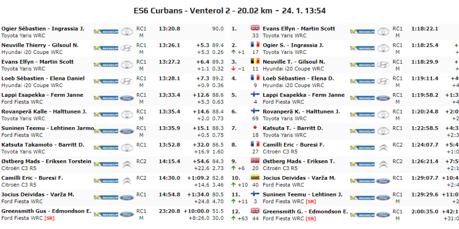 Rallye Monte-Carlo : Sébastien Ogier reprend la main sur la sixième spéciale de ce 88e rallye Monte-Carlo. C'est lui qui a été le plus rapide entre Curbans et Venterol en ce début d'après-midi. Il devance Thierry Neuville de 5,3 secondes et Elfyn Evans de 6,4 secondes. Sébastien Loeb pointe à la 4e place à 7,3 secondes.