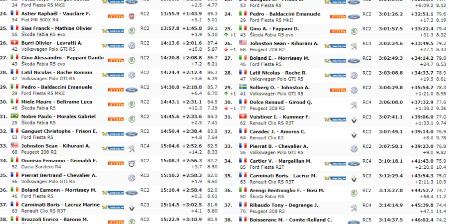Rallye Monte-Carlo : L'équipage des Haut-Alpins Christophe Ganguet et Emmanuel Frison poursuit sur sa bonne dynamique et pointe ce samedi soir à la 23e place du classement général du 88e rallye Monte-Carlo. Derrière, on retrouve Nicolas Latil et Romain Roche à la 28e position, suivi de près par le Champsaurin Renaud Dolce avec Quentin Giroud, 30e. Victor Cartier et l'Oraisonnaise Mathilde Margaillan sont 34e. Ils réalisent également un bon rallye : Mickaël Boisseranc et Chloé Comte-Rolland sont 38e. Les Bas-Alpins Rémy Rota et Jules Escartefigue sont en léger recul à la 47e place. A l'inverse, Laure Jaussaud et Julie Escartefique gagnent 3 places et sont désormais 49e. Bernard Jaussaud et sa fille Carine sont eux 68e. Le Sisteronnais Franck Sias et Olivier Mathias sur leur Skoda Fabia R5 Evo grimpent de 4 places à la 73e position. Enfin les frères Ronald et Jonathan Villy sont 78e mais ne sont plus en course pour le final.