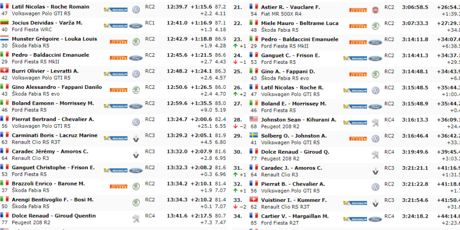 Au général, les équipages Ganguet sont 24e, Latil 26e et Dolce 30e. Victor Cartier est 34e, Mickaël Boisseranc 39e, Rémy Rota 44e et Laure Jaussaud 48e.