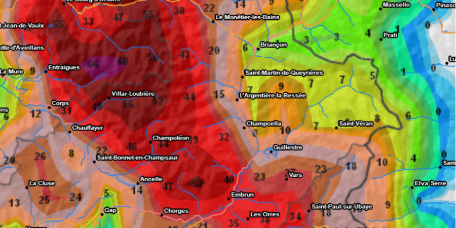 Le temps change rapidement ce lundi après-midi à l'avant d'une perturbation qui va toucher les Alpes du Sud à partir de la nuit prochaine. Ce mauvais temps devrait s'attarder sur nos massifs jusqu'en fin de journée de mardi et s'atténuer durant la nuit de mardi à mercredi en se limitant aux massifs du nord des Hautes-Alpes proches de l'Isère et de la Savoie. Avec une limite pluie/neige qui va baisser au fil de la nuit, demain en matinée nous retrouveront les flocons à partir de 900 à 1200 m des massifs des Hautes-Alpes à ceux des Alpes-de-Haute-Provence. En cours de journée cette limite/pluie neige va poursuivre sa baisse jusqu'à 800/900 m sur nos montagnes. Les massifs les plus exposés, Valgaudemar, Dévoluy et Champsaur, pourraient bien accumuler au-dessus de 1200 m, 30 à 50 cm de neige fraîche. Les massifs du Thabor, Écrins, Parpaillon, Ubaye et massif du Verdon ne seront pas en reste avec une couche qui pourrait atteindre 30/40 cm dans les stations en moyenne montagne. Ces chutes de neige seront probablement un peu moins importantes vers les massifs les plus à l'Est proche de la frontière Italienne avec une quinzaine de centimètres. Le vent sera également de la partie, avec une bonne tourmente qui est attendue en altitude ou le vent d'ouest à nord-ouest atteindra les 100 km/h. Dans les hauts cols exposés comme celui du Lautaret le transport de neige pourrait bien perturber la circulation. En cours d'après-midi de mardi, ces averses de neige descendront certainement la vallée de la Durance jusque vers l'Embrunais, avec pourquoi pas quelques flocons voltigeurs du coté de Gap. Ces précipitations s'annoncent un peu moins marquées sur le sud du Buëch et vers la Provence entre le Sisteronais, le pays Manosquin, Forcalquiéren et le plateau de Valensole. Retour d'un temps plus calme durant la journée de Mercredi.