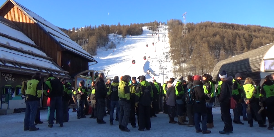 Alpes du Sud : Les débrayages ont eu lieu ce samedi à matin dans les stations partout en France à l’appel des syndicats CGT et FO. Dans les Alpes du Sud, de nombreuses stations ont suivi ce mouvement avec des débrayages… Il y a eu un débrayage de deux heures ce matin à Serre-Chevalier et toute la journée à Montgenèvre. Une centaine de salariés étaient mobilisés à Serre-Chevalier. Ils étaient environ 70 à Montgenèvre. A Vars, une cinquantaine de saisonniers étaient réunis devant le télémix. Il n’y a que remontées ouvertes en raison du débrayage. Du monde aussi à Risoul où la mobilisation est forte. A Orcières-Merlette, environ 40 % des salariés ont suivi le mouvement selon Eric Bécaire, responsable régionale du syndicat FO Remontées mécaniques. Toujours selon le syndicat, la mobilisation est encore plus forte à PraLoup avec un taux de gréviste très élevé de l'ordre de plus de 90%. Les remontées sont restées à l'arrêt une heure durant, de 9h à 10 heures. Des distributions de tracts ont lieu tout au long de cette journée dans les stations. Les stations touchées sont celles Montgenèvre, Allos, Puy-Saint-Vincent, Orcières-Merlette, Les Orres, Vars, Risoul, Serre-Chevalier et à La Grave. Un barrage filtrant composé d'une trentaine de saisonniers a eu lieu ce matin à l'entrée de la station de la Foux d'Allos avant l'ouverture des pistes. Il y a eu un débrayage aussi au Sauze.. Il y a également une mobilisation devant la permanence du député Joël Giraud à L’Argentière-la-Bessée.