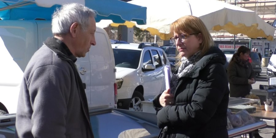A quelques jours des élections municipales, les candidats entament la dernière ligne droite. Parmi les rendez-vous importants, les dernières réunions publiques et les jours de marché, comme ce mercredi à Barcelonnette, où les deux candidats en lice étaient présents. Sophie Vaginay-Ricourt, adjointe du maire sortant, apprécie particulièrement ces moments de rencontres :