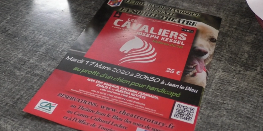 Une belle pièce pour une belle action. Comme chaque année le Rotary de Manosque organise une soirée au théâtre Jean Le Bleu. Cette année, ce 17 mars, la soirée est consacrée au financement d'un chien d'assistance. Pour l'occasion la troupe d'Eric Bouvron, Molière 2016 du théâtre privé, présentera les Cavaliers qui raconte le périlleux voyage initiatique du jeune et orgueilleux Ouroz sur les steppes afghanes. Ce dernier participe au tournoi le plus important d’Afghanistan, le Bouzkachi du Roi, un sport violent où tous les coups sont permis. Ouroz échoue. Il doit à présent retourner dans sa province pour faire face à son père, le grand Toursène, qui fut champion de ce jeu cruel et porte la fierté d’une famille. Gilles Rojon du rotary de Manosque nous parle de cette soirée :