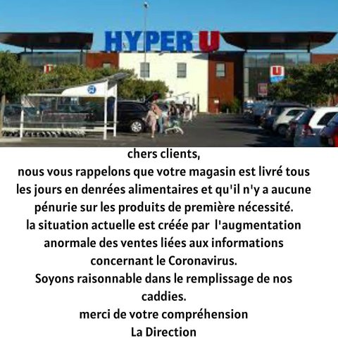 Publié par Jean Eymar le ven, 13/03/2020 - 19:51 89827753_815469308931364_6710174096853827584_o.jpg N'achetez pas trop! convenez que ce n'est pas tous les jours qu'on peut lire cela comme ici à Manosque! On se calme
